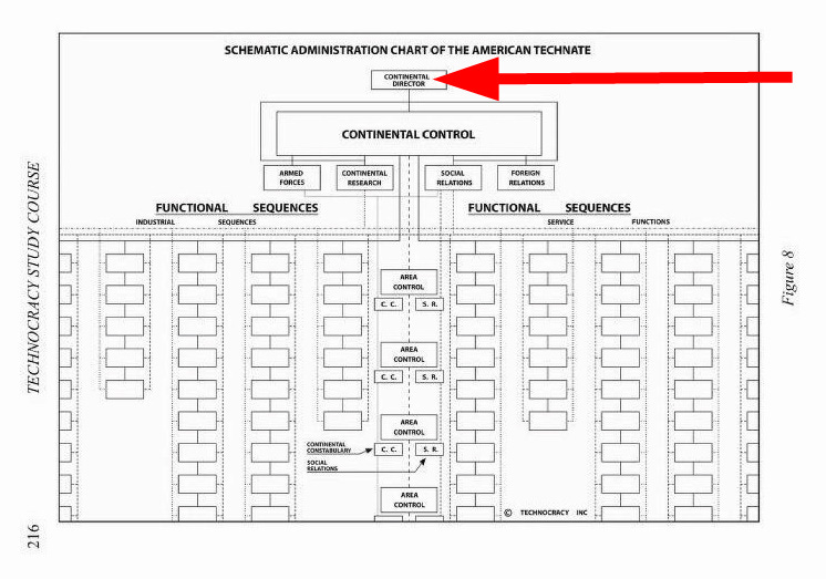 As you can see from the Schematic administration chart referenced in the Technocracy Study Course, the technate is controlled by a single “Continental Director”.